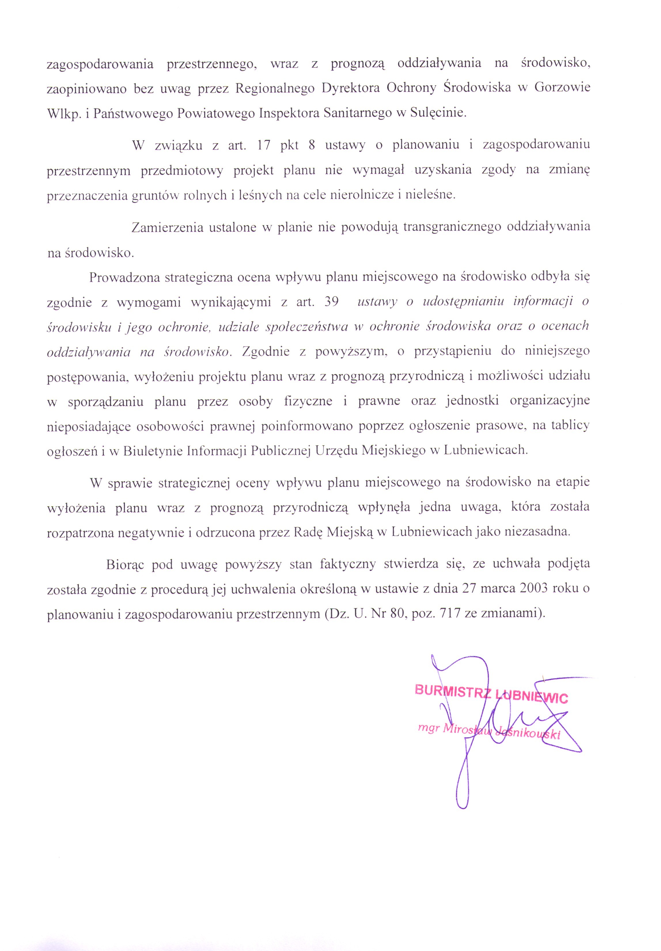 Z treścią ww. dokumentu wraz z uzasadnieniem, o którym mowa w art. 42 pkt 2 ww. ustawy Lubniewice (www.bip.lubniewice.pl).